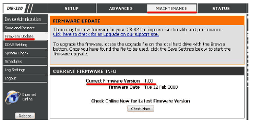 Настройка и прошивка Wi-Fi роутера D-Link DIR-320Роутер D-Link DIR-320 в сети WiFi.WiFi роутер D-Link DIR-320 является ключевым устройством в домашней или офисной сети WiFi. Подключив WiFi роутер D-Link DIR-320 к выделенной линии или широкополосному модему, вы сможете поделить подключение к Интернет на несколько компьютеров для поиска информации в Web, проверки электронной почты и общения в режиме online. Функция "Гостевая зона" предоставляет еще один идентификатор беспроводного соединения и позволяет создать еще одну беспроводную сеть, например для посетителей вашего офиса, чтобы не допустить утечки информации из офисных компьютеров по сети WiFi. Безопасность в сети WiFi c роутером D-Link DIR-320WiFi роутер D-Link DIR-320 имеет программный межсетевой экран(firewall), который защищает WiFi сеть от хакерских атак. Эта функция предотвращает нежелательные вторжения в WiFi сеть, которые на самом деле могут быть следствием не только усилий хакеров. Случайно получить доступ к сети WiFi могут ваши соседи, имеющие компьютер с адаптером WiFi. WiFi роутер D-Link DIR-320 оборудован также фильтром МАС-адресов, предотвращающим неавторизованный доступ к сети WiFi. Специальный алгоритм "родительского контроля" позволяет предотвратить просмотр нежелательных сайтов вашими детьми, или ограничить доступ сотрудникам офиса к сайтам социальных сетей. WiFi роутер D-Link DIR-320 поддерживает стандарты шифрования WEP и WPS. Отличие роутера D-Link DIR-320 от роутера D-Link DIR-300WiFi роутер D-Link DIR-320 оборудован портом USB, для подключения USB-принтера. Это дает возможность подключения сетевого принтера, которым можно воспользоваться с любого компьютера, подключенного к сети WiFi. Перепрошивка и русификация WiFi роутера D-Link DIR-320 Производитель рекомендует обновлять прошивку роутера, так как в более новых версиях прошивок исправлены различные недочеты предыдущих версий и могут быть добавлены новые функции. Cначала, необходимо выяснить текущую версию прошивки. ![]() Далее, на официальном сайте D-Link (http://ftp.dlink.ru/pub/Router/DIR- 320/Firmware/) посмотреть, какая версия прошивки является последней. В случае, если в роутер уже загружена последняя версия прошивки, то обновлять ее не требуется. Но как правило, с завода поставляется оборудование с устаревшими прошивками. Скачайте с сайта производителя последнюю прошивку на диск компьютера и затем укажите файл прошивки на соответствующей странице в настройках роутера D-Link DIR-320. Нажмите кнопку Apply и подождите. Во время перепрошивки ни в коем случае не отключайте питание роутера и компьютера, не перезагружайте компьютер. Помните, что перепрошивка маршрутизатора D-Link DIR-320 может занимать порядка двух минут. Для русификации роутера D-Link DIR-320 нужно скачать языковой пакет (language pack) для вашей версии прошивки. Далее, файл с языковым пакетом нужно указать в поле "Language pack upgrade" и затем нажать кнопку "Upload". Далее, процесс настройки роутера D-Link DIR-320 будет описываться на основе русифицированной прошивки. Начало настройки роутера D-Link DIR-320Первым делом, необходимо перевести сетевую карту в режим автоматического определения IP-адреса. Далее, подключите роутер к сетевой карте компьютера и наберите в вашем любимом браузере адрес: http://192.168.0.1. Логин для входа в настройки роутера D-Link DIR-320 admin. Пароль изначально не установлен и рекомендуется установить свой собственный пароль. Настройка роутера D-Link DIR-320 в режиме автоматического получения адресов.Заходим на стр